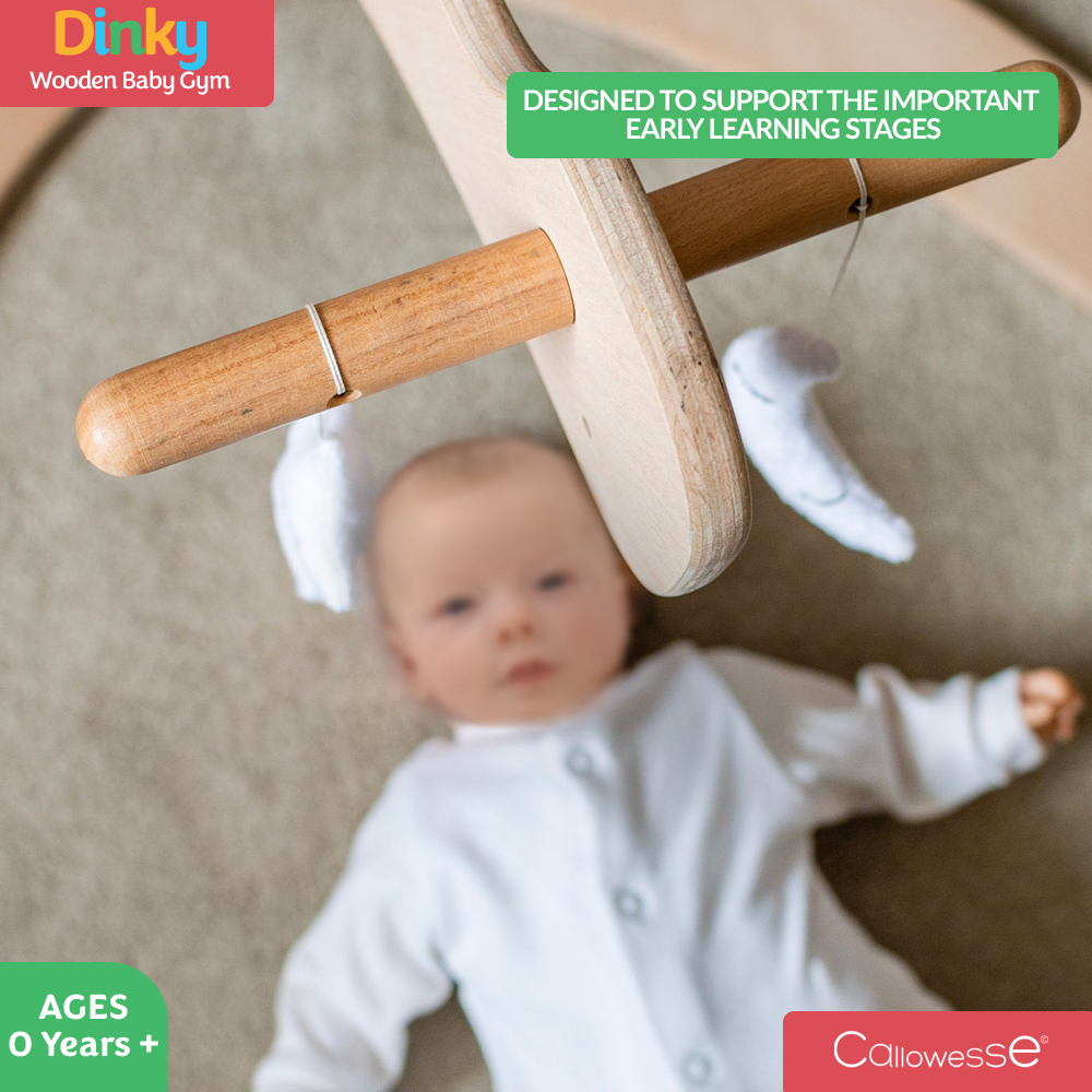 The Dinky Play Gym with the soft toys and shape promotes sensory and motor skill development.